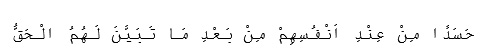 "Kitap ehlinden (Yahudiler ve Hıristiyanlar) birçoğu, gerçek (hak)[2], onlara tebeyyün ettikten (yani Türk milletinin, Tarihi misyonunu üstlenme kararlılığından vazgeçmeyeceği gerçeği anlaşıldıktan) sonra bile, içlerindeki kıskançlıktan dolayı sizi, imanınızdan (bu kararlılığınızdan) küfre (istediklerini yaptıkları eski hale- 2003 öncesine[3]) döndürmek isterler. Siz şimdilik, Allah onlar hakkındaki emrini getirinceye kadar onları affedin, hoşgörün. "