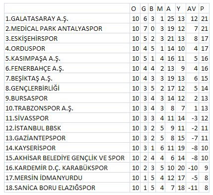 Süper Lig'de 10.Haftanın panoraması