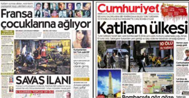 Son bir söz de mütareke dönemi gazetesi olan paçavra bir gazeteye: Kendi toprağında bomba patlarken attığı manşet şu: Katliam ülkesi