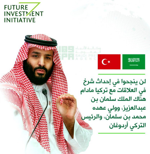 Kaldı ki Muhammed bin Selman yaptığı hatalardan çıkardığı dersi unutmamak için Erdoğan’a söylediği o sözleri Türk bayraklı bir görsel haline getirtip, Suudi resmi haber ajansının twitter sayfasına sabitledi.