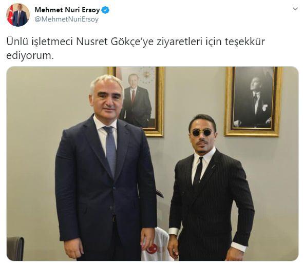 Bakan Ersoy, önceki gün ünlü etçimiz Nusret’i ağırlamış.
