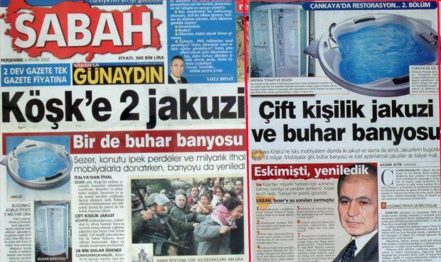 İş bu “mütevazı” Sezer, Bülent Ecevit’in suratına “Anayasa kitapçığı” fırlatarak ülkeyi ekonomik krize sokup, Türkiye’ye “50 milyar dolar”dan daha fazla kayıp yaşattıktan bir yıl sonra ise, Çankaya Köşkü’ndeki konutunu ipek perdeler ve ithal mobilyalarla donatmış, bir de banyosunu yeniletmişti…