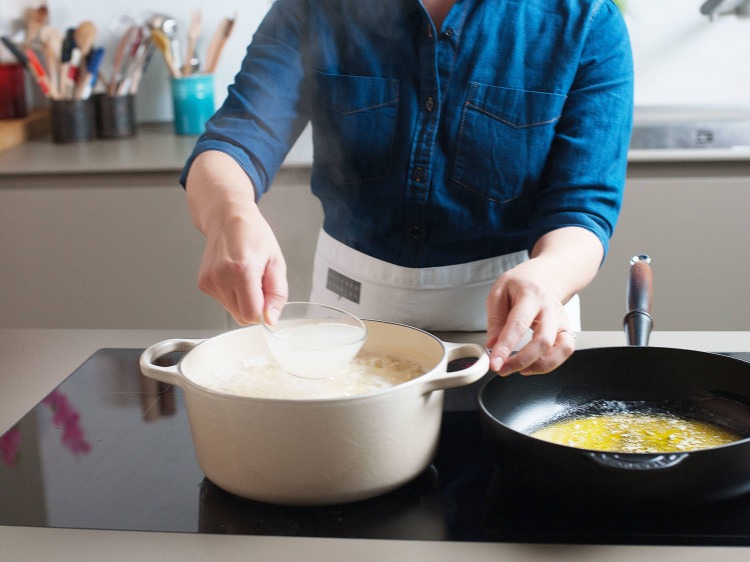Makarna suyundan bir miktar süzmeden ayıralım.