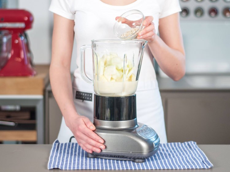 Kavun ve ananas dilimleri, yulaf sütü (normal süt) olabilir, bal, ve yulafı blendere ekleyelim.