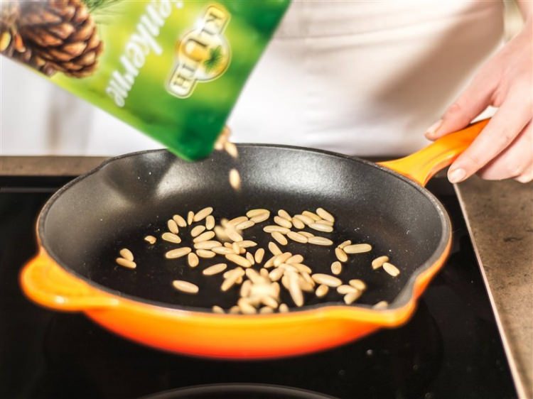 Tavada yağsız çam fıstığını kavuralım.