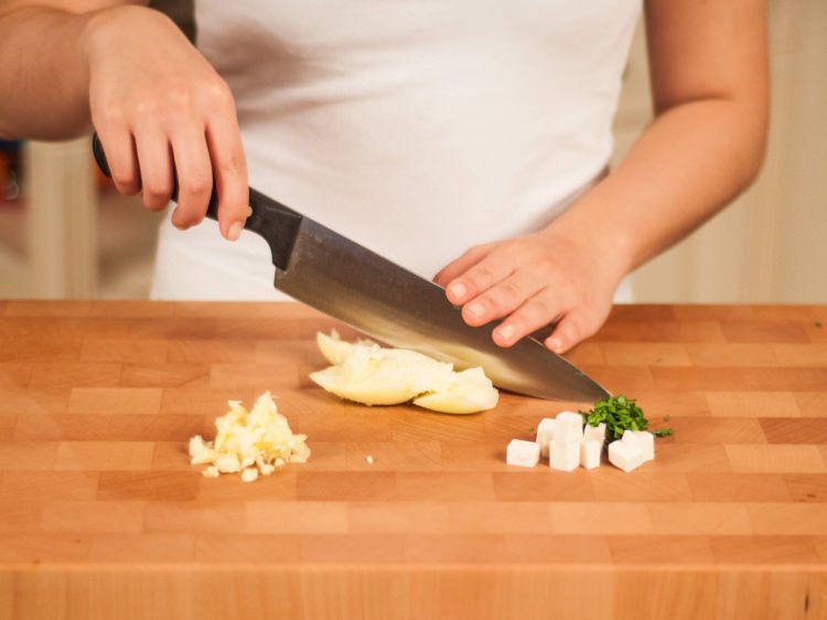 Fırını 180 derecede ısıtalım. Tofu peyniri, maydanoz ve kabak içini doğrayalım.