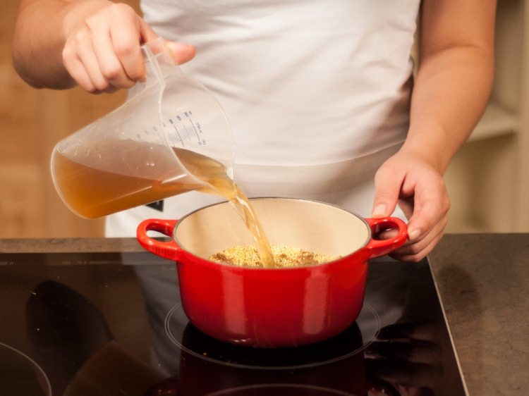 Mısırı tencereye koyalım ve sebze suyunu ilave edelim. Kişniş ve kimyon ekleyip 15 dk pişirelim.
