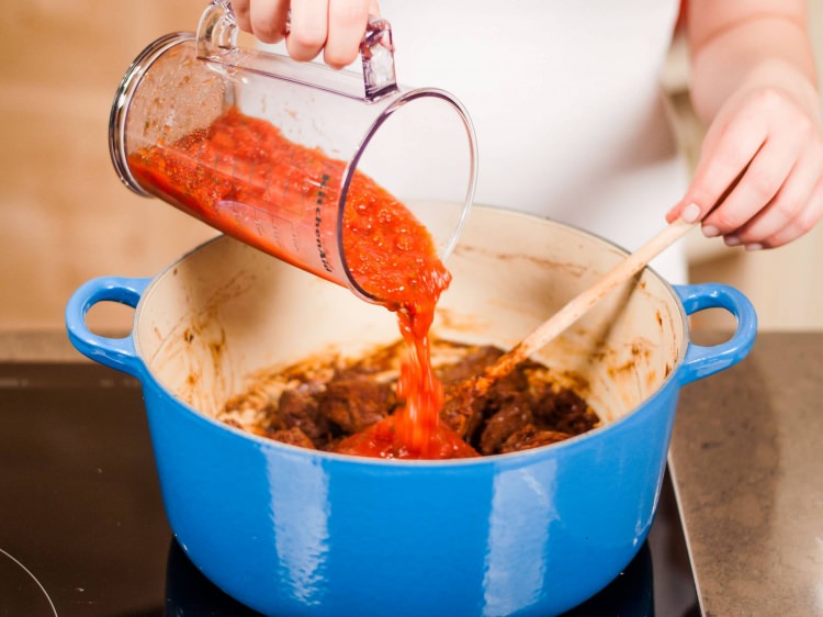 Domates ve su ekleyip 1.5 saat pişirelim.