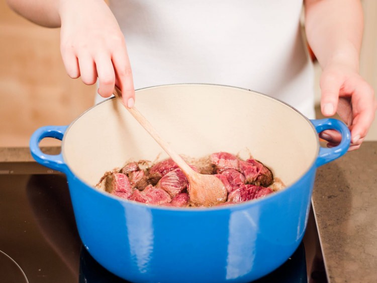 Tencerede bitkisel yağ ile etleri kızartalım.
