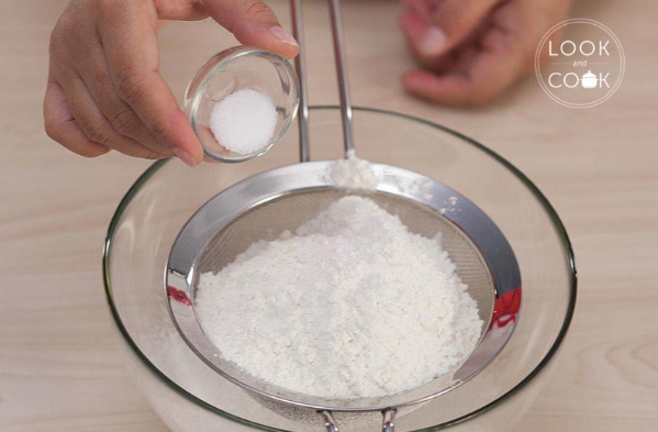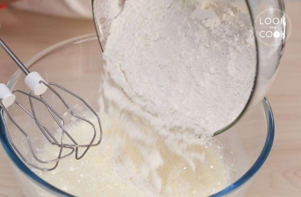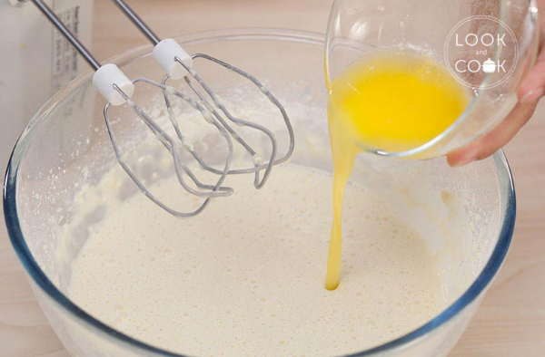 Yumurta ve sütü çırpalım. Unlu karışımı ekleyip iyice çırpalım.
