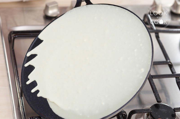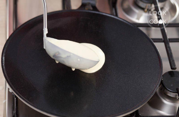 Tavada tereyağını eritelim. Yaklaşık bir kepçe krep karışımından dökelim.