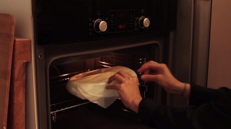 Tepsiyi fırından çıkarmadan yağlı kağıdı alarak 5 dakika pişirelim.