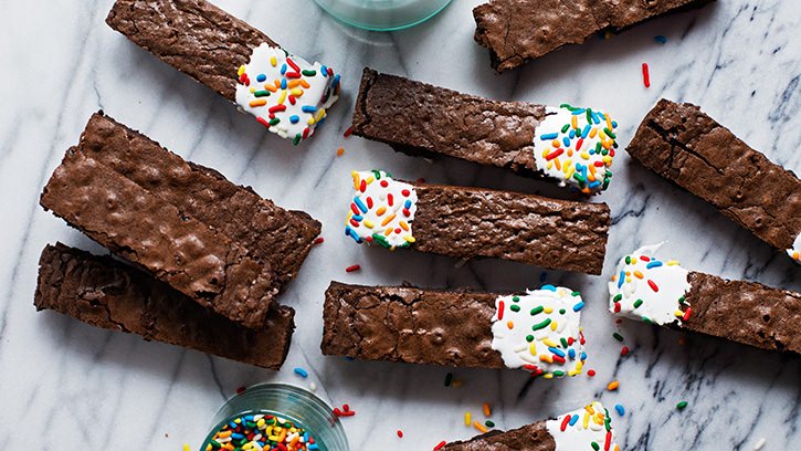 Keklerin bir kenarlarını beyaz çikolata ve krema ile hazırladığınız karışımın içine batıralım. Daha sonra renkli şekerlerle süsleyelim.