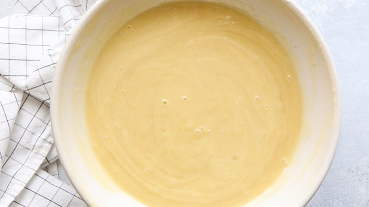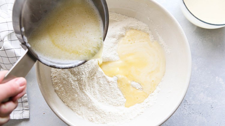 Yumurta ve şekeri iyice çırpalım. Daha sonra kremayı unu ve eritilmiş tere yağını hamurun içine katalım.