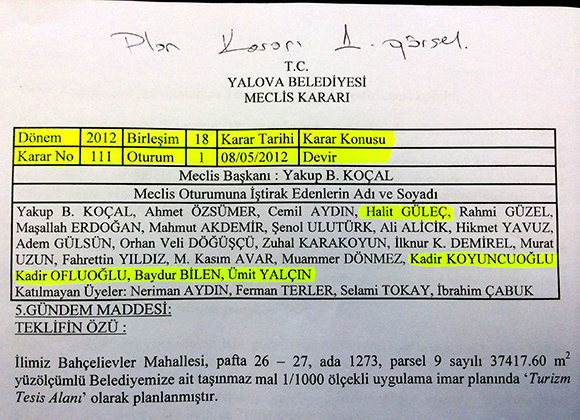 Söz konusu araziye yönelik, 7 Haziran 2012 tarihinde ise satış kararı alındı. Yine 4 CHP'li meclis üyesinden 3'ü onay verirken, Vefa Salman'ın yardımcısı Halit Güleç de onay veren isimler arasında yer aldı. CHP'li Kadir Ofluoğlu, Ümit Yalçın ve Baydur Bilen kararın alınmasında etkin rol oynarken, CHP'li Kadir Koyuncuoğlu ise o günki oylamada yer almadı. Kısaca CHP bugünkü beyanlarının aksine, satış kararında ret oyu kullanmadı.