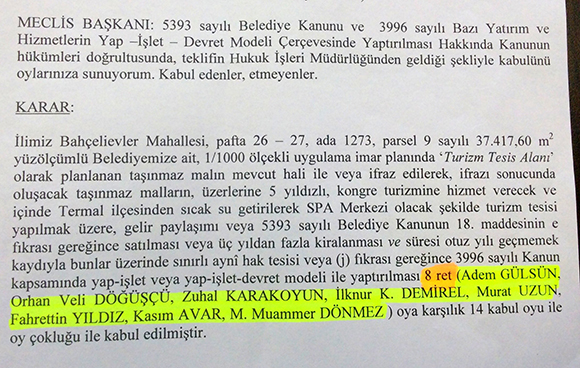 Söz konusu kararın alınmasında yine AK Parti'li meclis üyelerinin tamamı ret oyu kullandı.