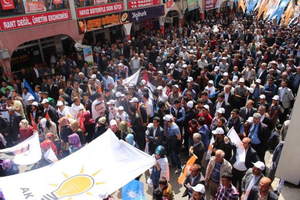 Başbakanımızın selamlarını getirdim. İnşallah Ağrı'nın alnı da aktır, vicdanı aktır, mührü vururken vuracağı yer de AK Parti'dir inşallah. Her seçimin bir önemi var ama 30 Mart seçimi, Türkiye Cumhuriyeti'nin siyasi tarihinde, demokrasi tarihinde en önemli seçimlerden biriydi. Türkiye'nin her bir köşesinden 30 Mart'ta milli iradeye gür bir sesle destek veren herkese teşekkür ederim, büyük bir zafer kazanıldı. Şimdi bu zaferi taçlandırma vakti. İnşallah 30 Mart'ta yarım kalan işi, 30 Mart'ta kutladığımız zaferi taçlandırma işini 1 Haziran'da akşamleyin gerçekleştireceğiz. 30 Mart'ta birtakım hilelerle veya başka yollarla yarım bırakılan o güçlü sesimizi 1 Haziran'da daha büyük bir gür sesle takdim etmeye hazır mıyız? Hiç kimsenin şüphesi olmasın” dedi.